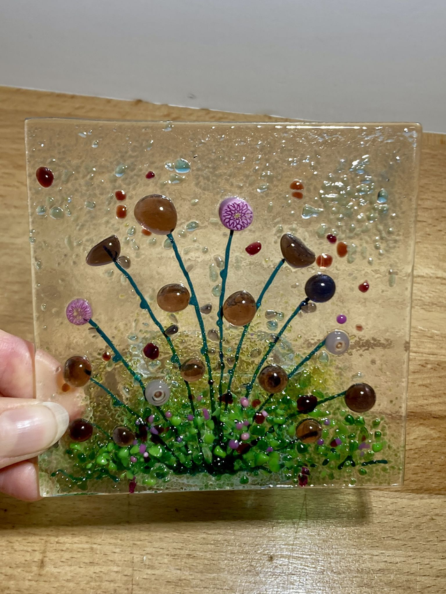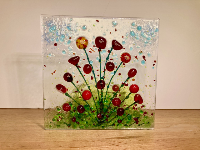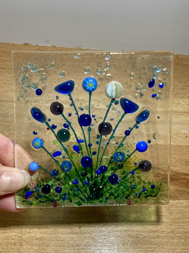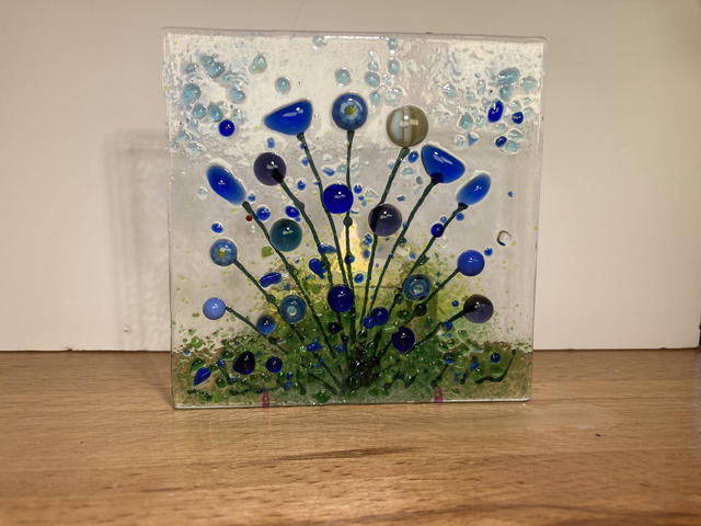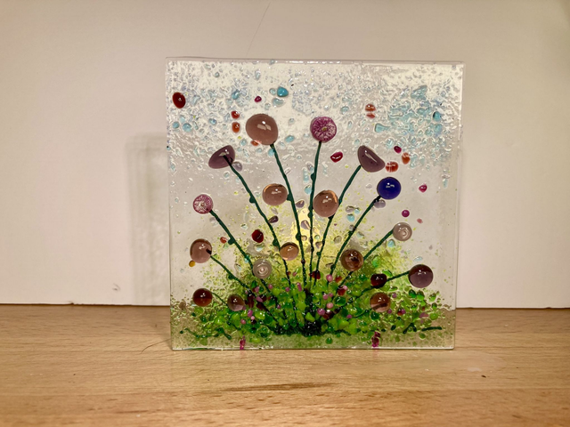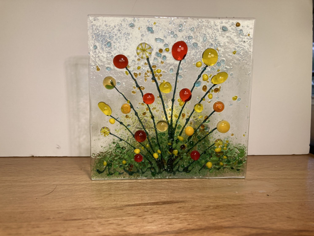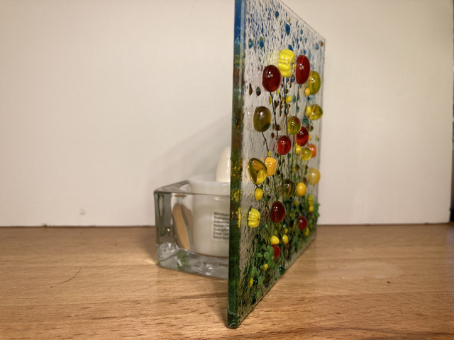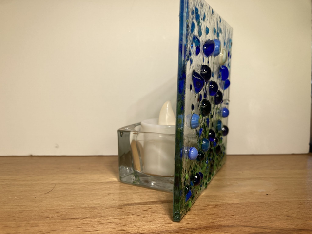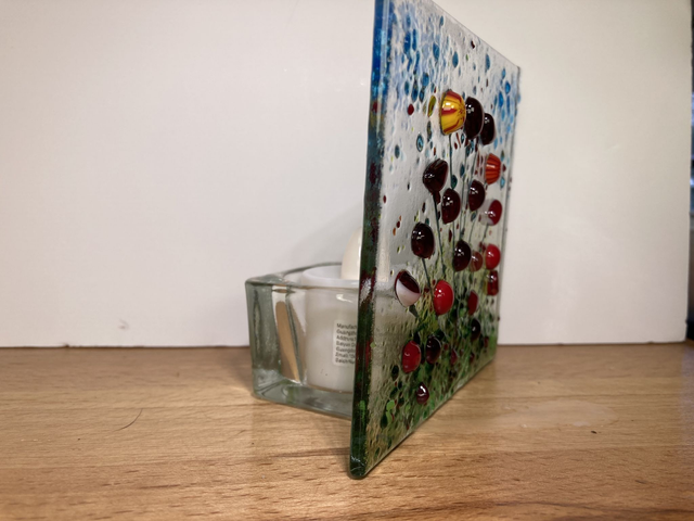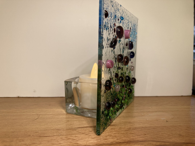 Elevate your home with this stunning fused glass tealight holder in a floral artwork design